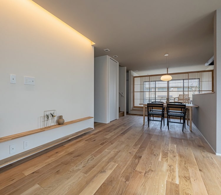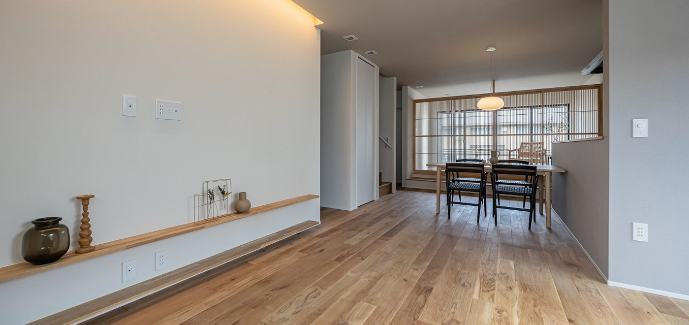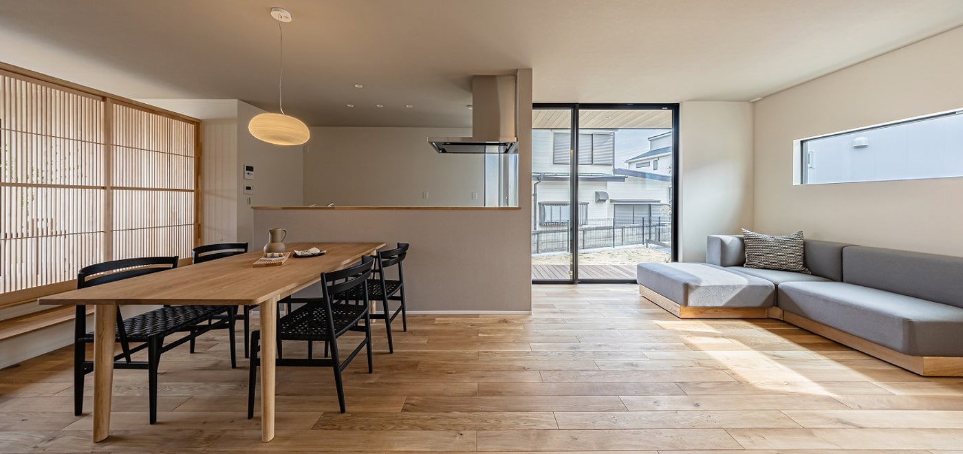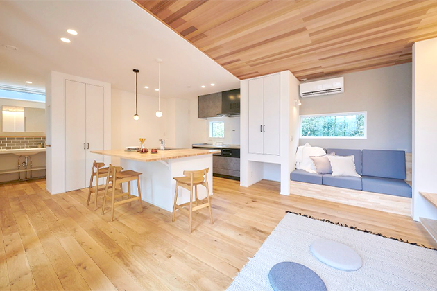 無垢材の温もりが感じられる空間は、将来の4LDKにも対応可能。テラスでの朝食や、大階段で映画鑑賞といった豊かな生活空間が広がります。子育てに最適な環境が整っており、都内からの移住者にも人気のエリア。