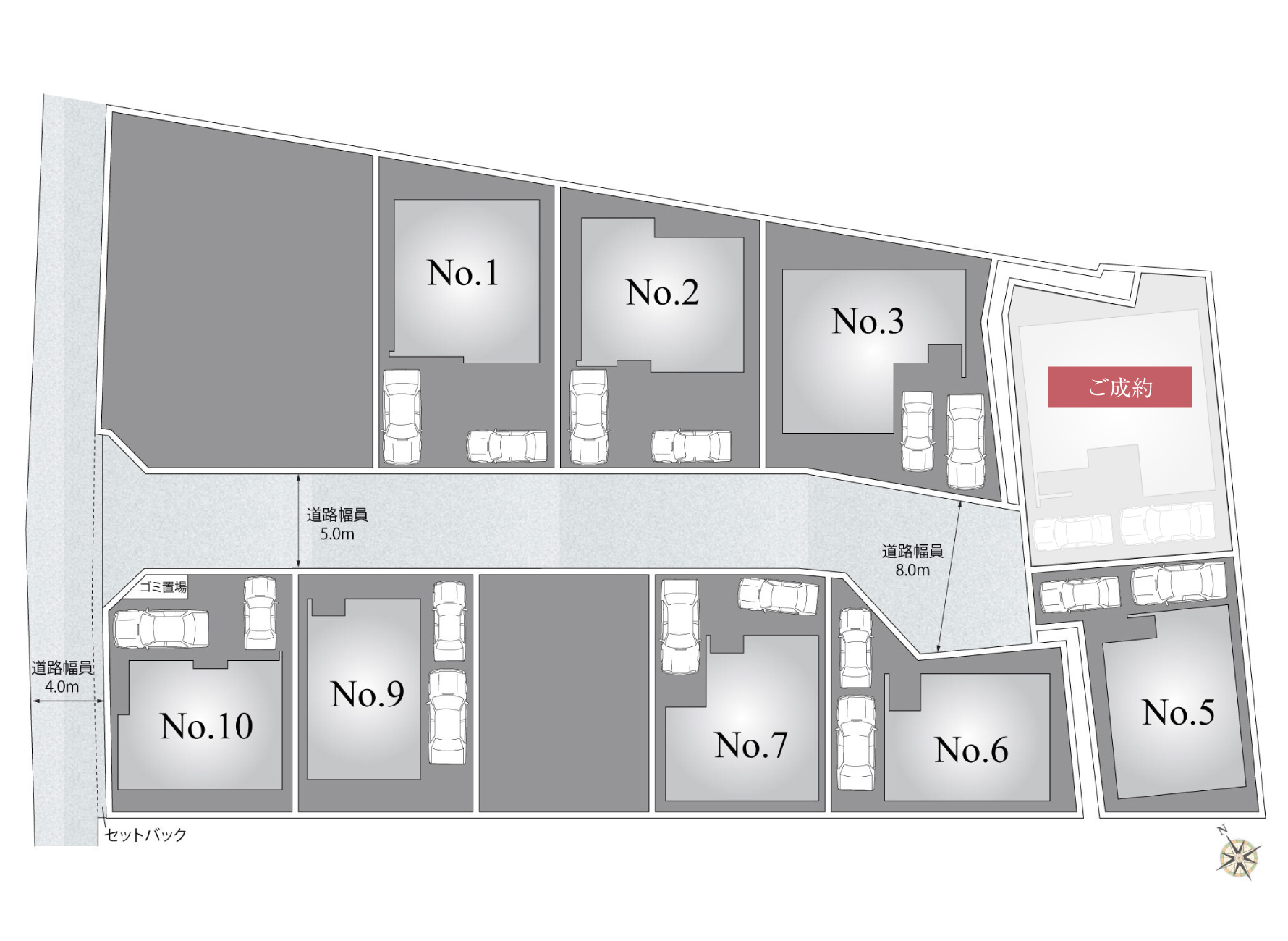 全10区画で誕生する、家族に優しいゆとりある街並み。広々とした敷地に、それぞれの区画が角地や南向きなど、魅力的なプランニングを実現。開発道路は幅員約5〜8mで車のすれ違いもスムーズ、安心して暮らせる環境です。奥まった立地による静かな住環境と、区画内道路に面した明るく開放的な街並みを両立。駅徒歩8〜9分の好立地に加え、学校・公園・スーパーも徒歩圏内に揃い、家族の毎日を心地よく彩る街です。