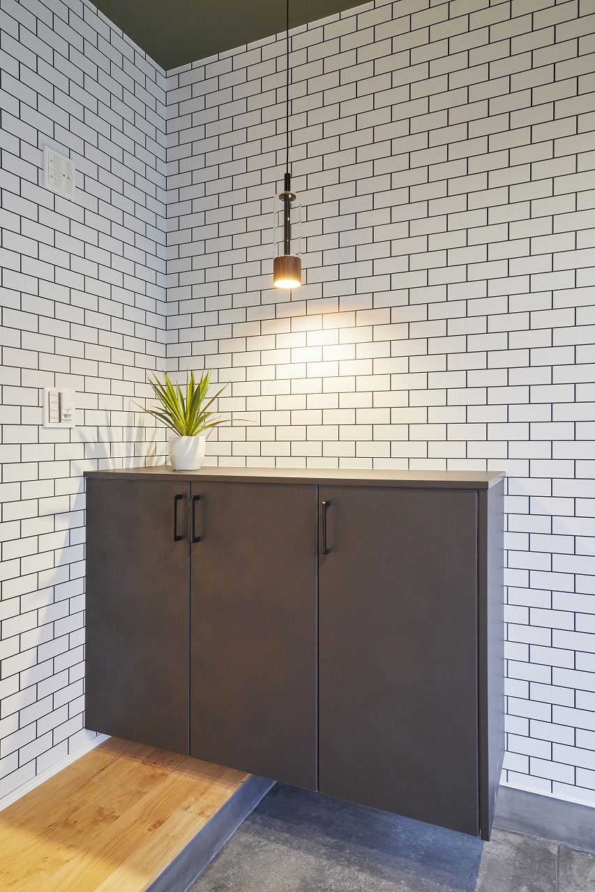 玄関脇の収納には日ごろ履く靴や小物を。上は飾り棚としてもお使い頂けます。